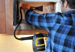 The Auto Detailing Handheld Steam Cleaner features a high-powered steam nozzle and a 1.5” brass utility brush to scrub car engines and other hard metal surfaces.