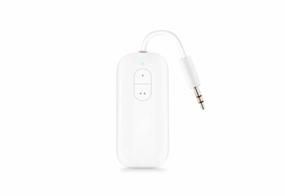 The Bluetooth Headphone Adapter connects two pairs of wireless headphones to any wired headphone jack.