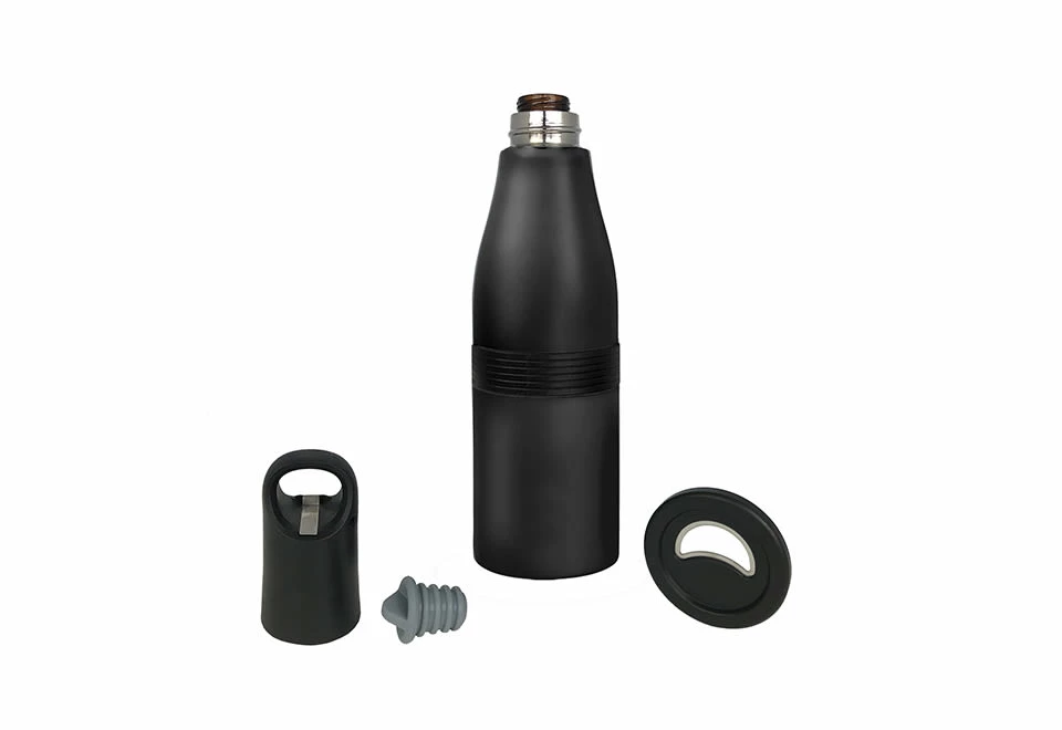 • Screw-on cap with built-in bottle opener and silicone bottle stopper