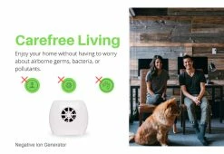 Clean your air with the power of negative ions. The Negative Ion Generator emits up to 20 million negative ions per second to bond with and remove airborne contaminants such as viruses, bacteria and mold spores.