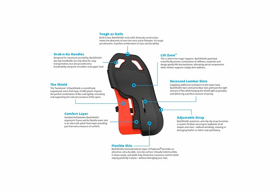 The Seated Spinal Support lifts your entire spinal column to increase blood flow and alleviate vertebrae compression for drivers and office workers.