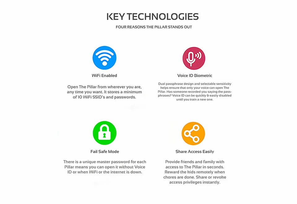 • Features a unique Fail-Safe Mode with a master password that allows you to unlock your lock box when voice ID is disabled, or when your internet connection is down